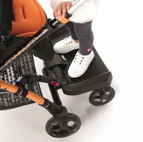 Jané Go Up testvérfellépő Szuper megoldás, ha a nagyobb gyermek elfárad a séta során és szeretnénk kényelmesen megoldani a haladását. Jané Go Up testvérfellépő Jellemzői: - 2 éves kortól, 5 éves korig vagy 20 kg-ig használható - könnyen, egyszerűen csatlakoztatható - univerzális a legtöbb babakocsival - nagyobb testvér számára praktikus kiegészítő - 360° mozgatható kerekek - csúszásgátlós felület - felhajtható, ha nincs használatban Mérete: 38x29x38 cm